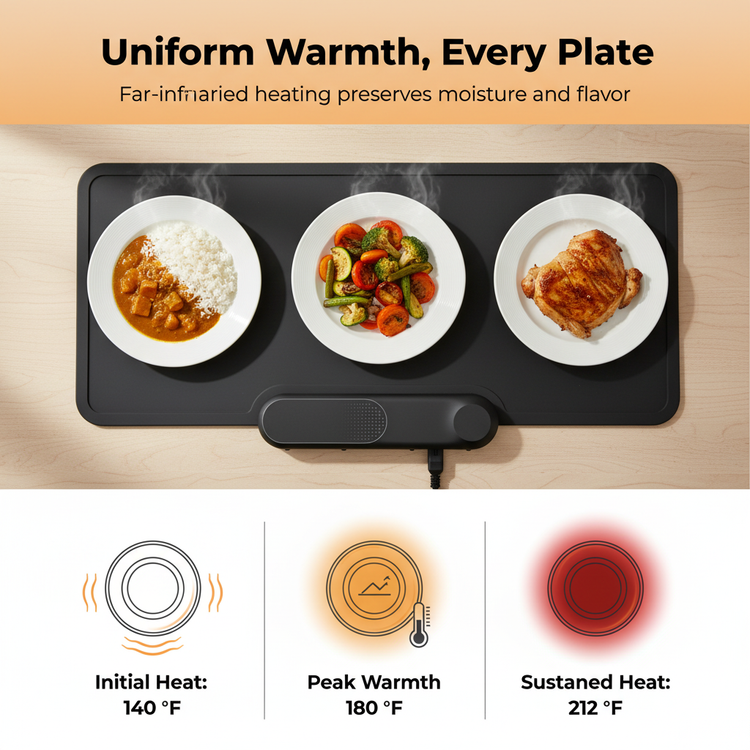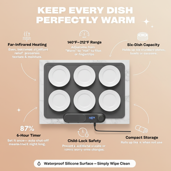 Advanced infrared heating provides consistent warmth across the entire surface, keeping dishes perfectly hot for hours. With auto shut-off protection, you can set it and forget it—no constant reheating, no worries.